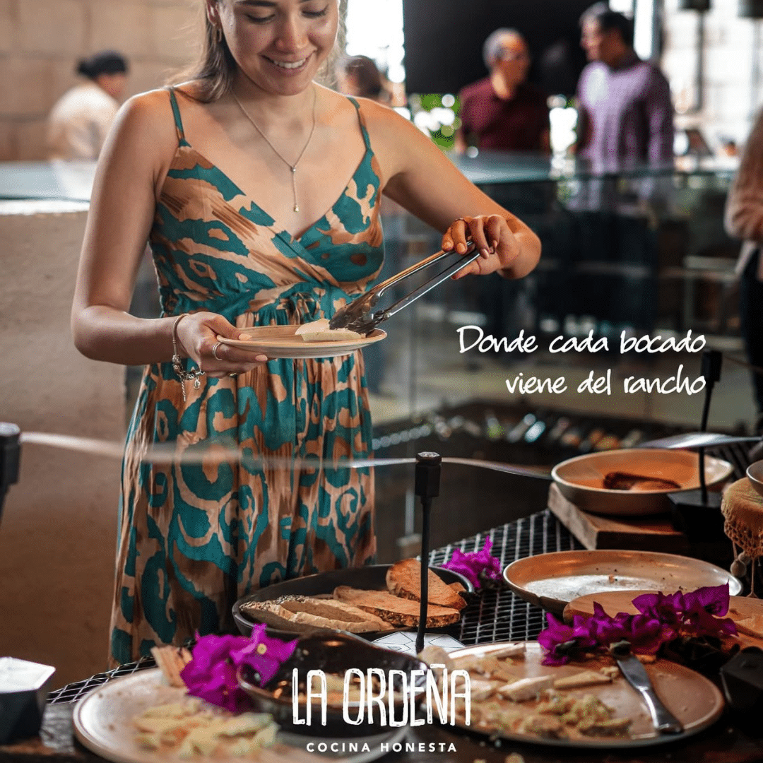 Cerrarás con broche de oro esta experiencia con un menú degustación de 5 tiempos con los platillos más representativos de la cocina del campo a la mesa en el restaurante La Ordeña, acompañado de una copa de vino o cóctel nacional de tu elección. Incluye también agua del día, café y té.