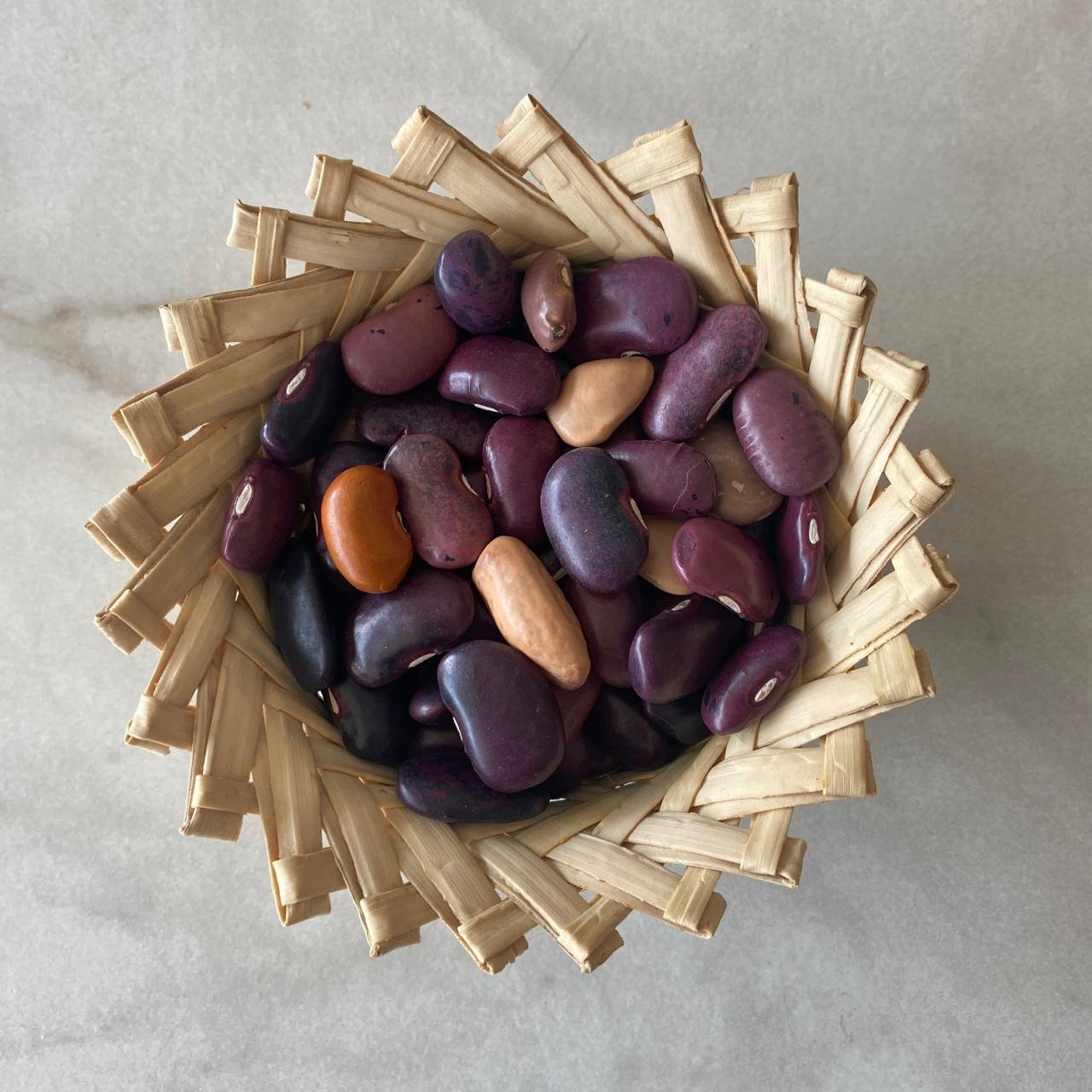 Frijol ayocote arcoiris de producción limitada cultivado de manera tradicional por campesinos en tierras propias en Ozumba, estado de México.