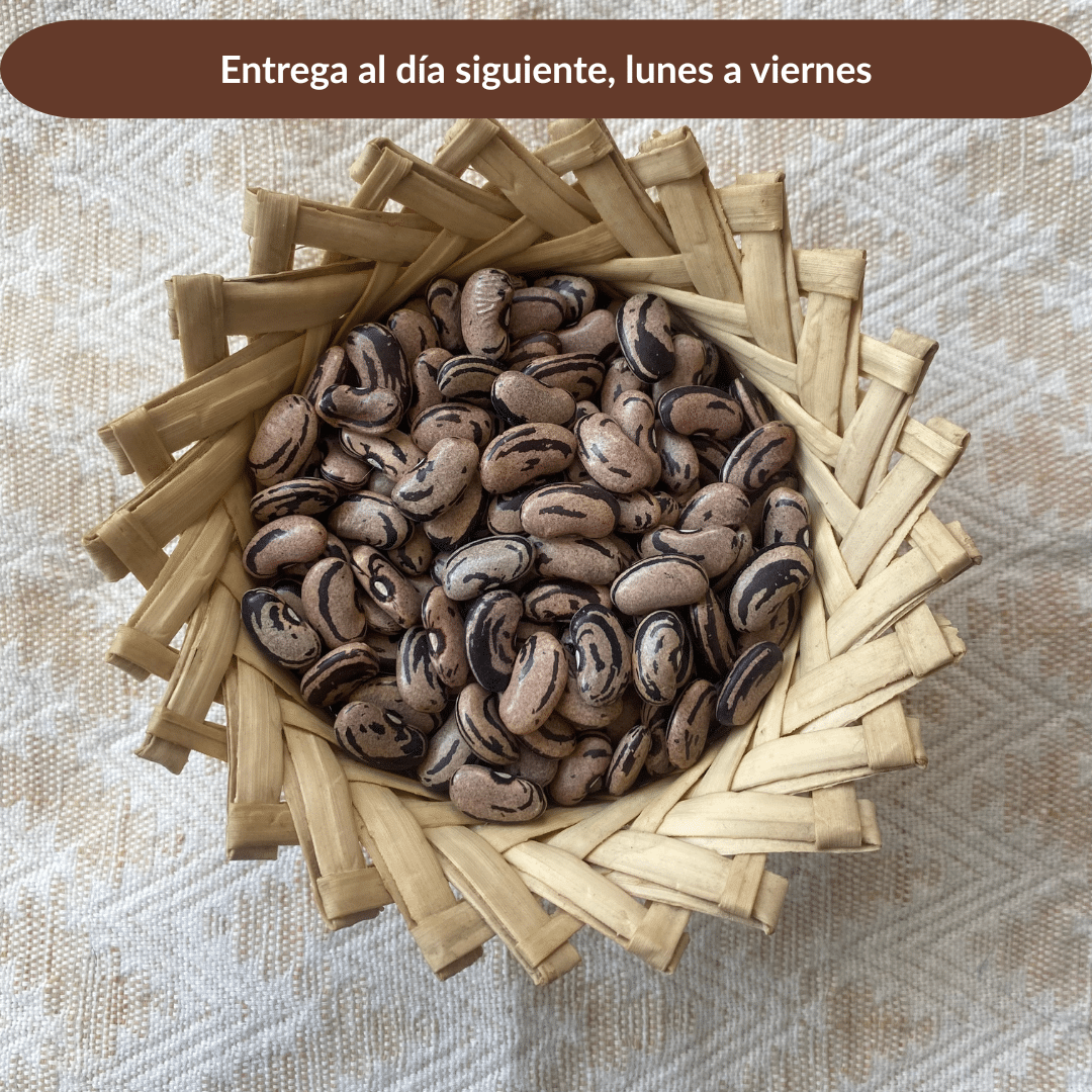 Frijol proveniente de Hidalgo y Ciertas zonas de Puebla, de tonos liláceos y rajas negras. Es una variedad de frijol que cada vez menos campesinos siembran.